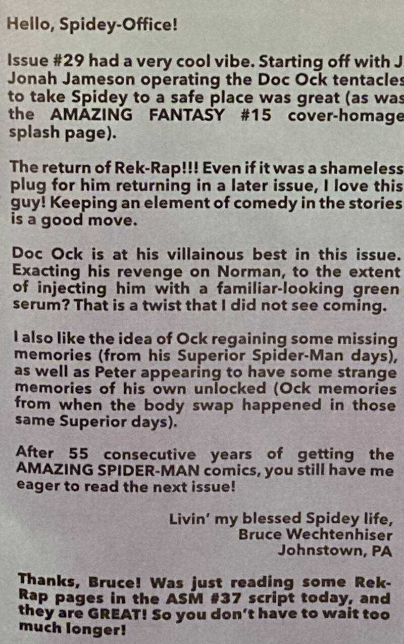 Another fan letter of mine is published in Amazing Spider-Man #34, in stores on Sept. 20, 2023!